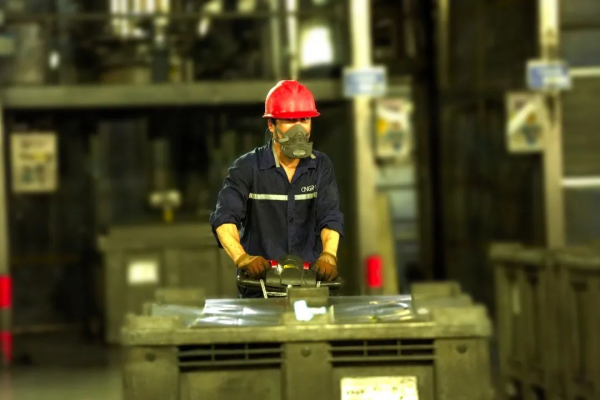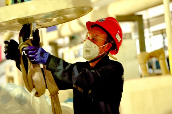 在四鈷二車間,溶解員劉均芝一絲不茍地綁好吊繩,將原材料精準投放到位。溶解崗位要求穿戴全套護具,這進一步增加了劉均芝的體感溫度,但他沒有絲毫懈怠,在平凡的崗位上發揮出不凡的能量,用匠心書寫著高溫下的感動。他們車間的口號是:堅守崗位,不懼高溫,保障安全生產。